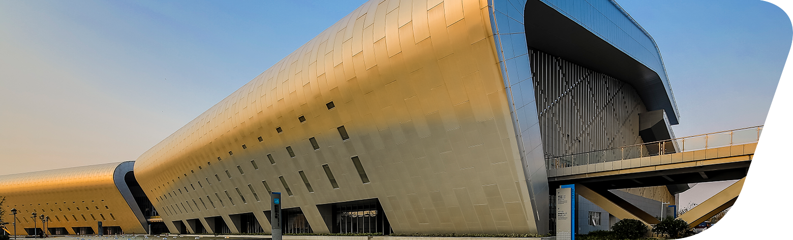 場(chǎng)館以“山水相依、五省通衢”為理念,采取山環(huán)水抱、山水相依的規(guī)劃格局